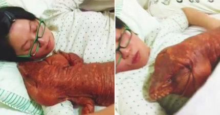 女子抱「一大坨紅色的肉」蓋被睡覺,網友仔細一看嚇死!(影片)