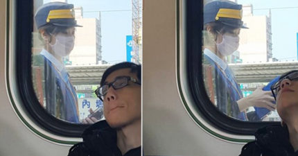 搭火車遇「戀愛系正妹車長」求神正面照,但「右下睡翻男」太搶戲網友求認識意外「釣出本尊」!