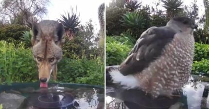 她好奇在後院「放飲水機」 意外拍下「動物泳池趴」每天不同客人!