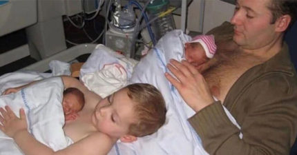 雙胞胎出生「被哥哥抱懷裡」照片爆紅 院方大讚:有沒有抱差很多