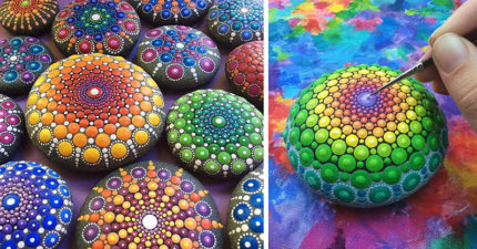 藝術家把「普通石頭→唯美藝術」 全部只用「彩色點點」就完成黃金比例!