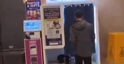 情侶躲大頭貼機!女友「跪姿服務男友」 路人光速拉開簾子糗了