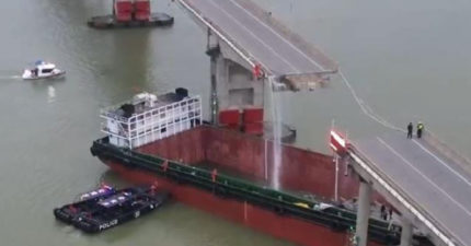 影/廣州大橋遭貨櫃船撞斷 「5輛汽機車全掉落」2人死亡、3人失聯