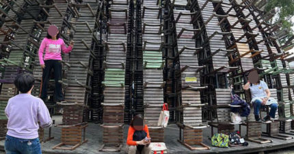 無視警告!大媽硬爬駁二「椅子樂譜」拍美照 木頭應聲斷裂慘了