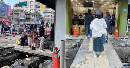 下面就是大洞!一群人「擠獨木橋排隊買飲料」