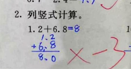 答案不是8!國小數學「1.2+6.8」家長愣:錯在哪 老師解答眾人傻眼
