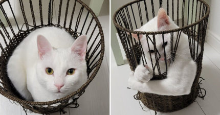 氣質白貓乖乖窩著超可愛!突伸「爆肌手臂」竹籃變形 主人曝日常訓練內容