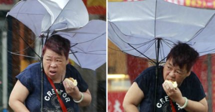 狂風中這名史上最狂阿嬤被拍到傘被吹爆還堅持吃肉包,她的「最珍貴肉包」成了國際新聞主角!