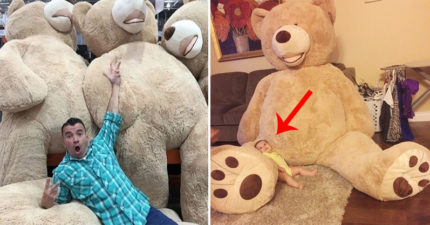 爺爺買「超大型泰迪熊」送孫女 小女娃「快被吞掉」的超萌迷你身影讓網友都融化了!