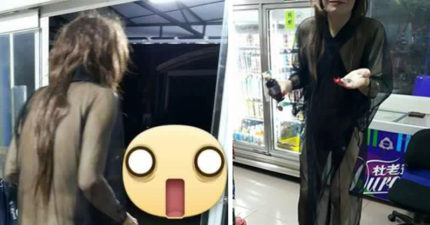 中秋過後的夜晚網友在便利商店被這位「忘記回月亮的嫦娥」,一轉身嚇了一大跳…