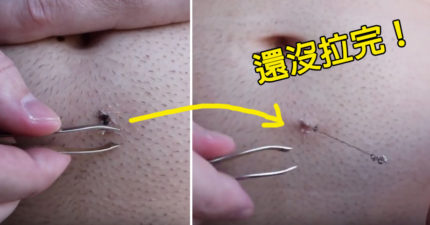 他在刮毛時發現肚臍底下有個奇怪的東西,一拉發現竟是「史上最長倒插毛髮」!