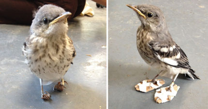 受傷小鳥站不起來,因此他們就給他穿上了這雙超可愛的「雪橇」!
