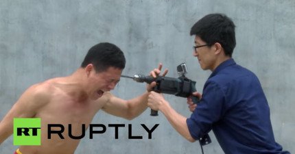 看这名少林武僧用电钻钻头后我就真的知道少林功夫好耶!