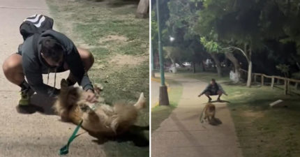 她遛狗巧遇前男友「阿金認出衝去撲倒」 結局眾人暴動
