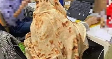 上班轉頭見同事「身披一大張薄餅」 他餓昏:去哪沾咖哩?